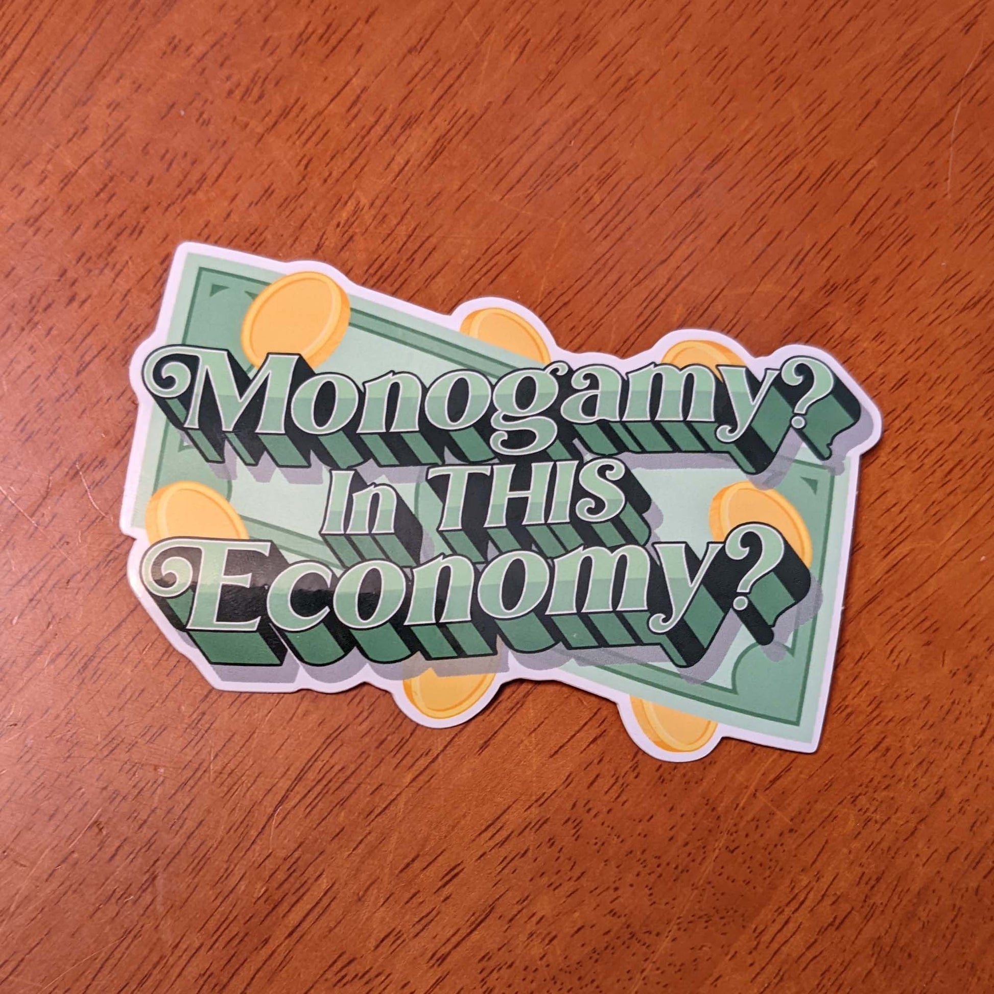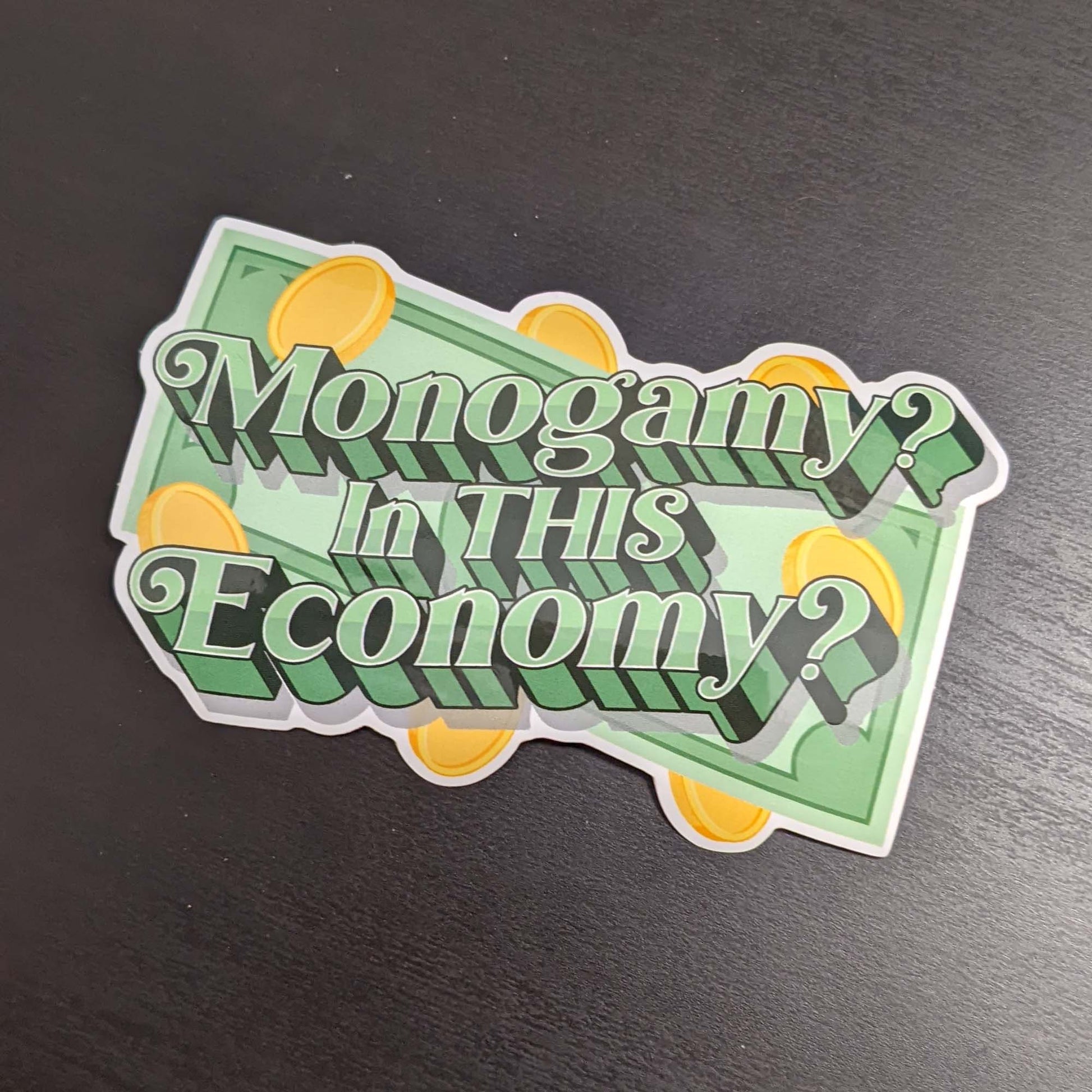 Monogamy? In THIS Economy? Vinyl Sticker (4.6"x2.8") CLEARANCE