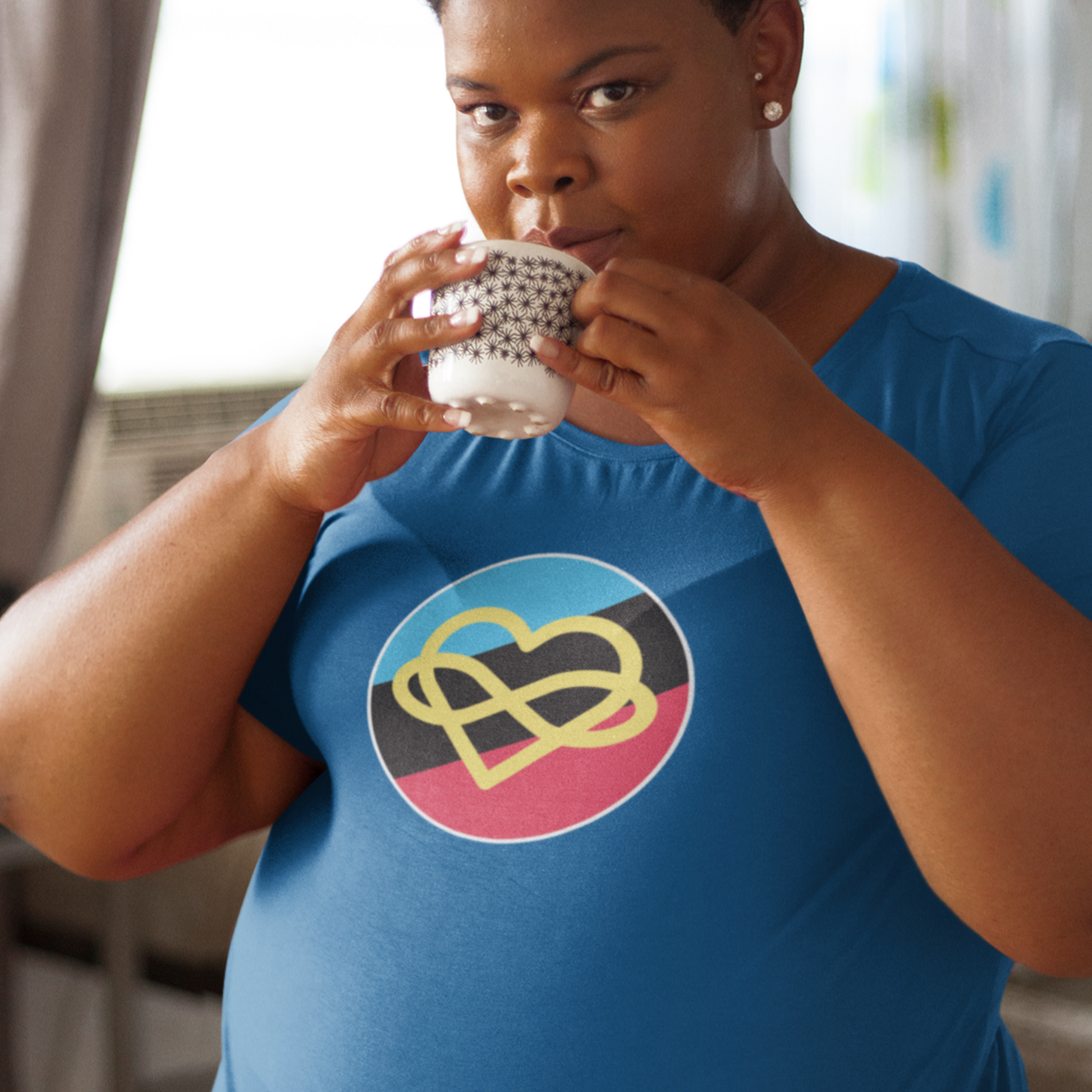 A new twist on a classic polyamory symbol. This design uses the color scheme of the polyamory pride flag and a clean modern version of the infinity heart.