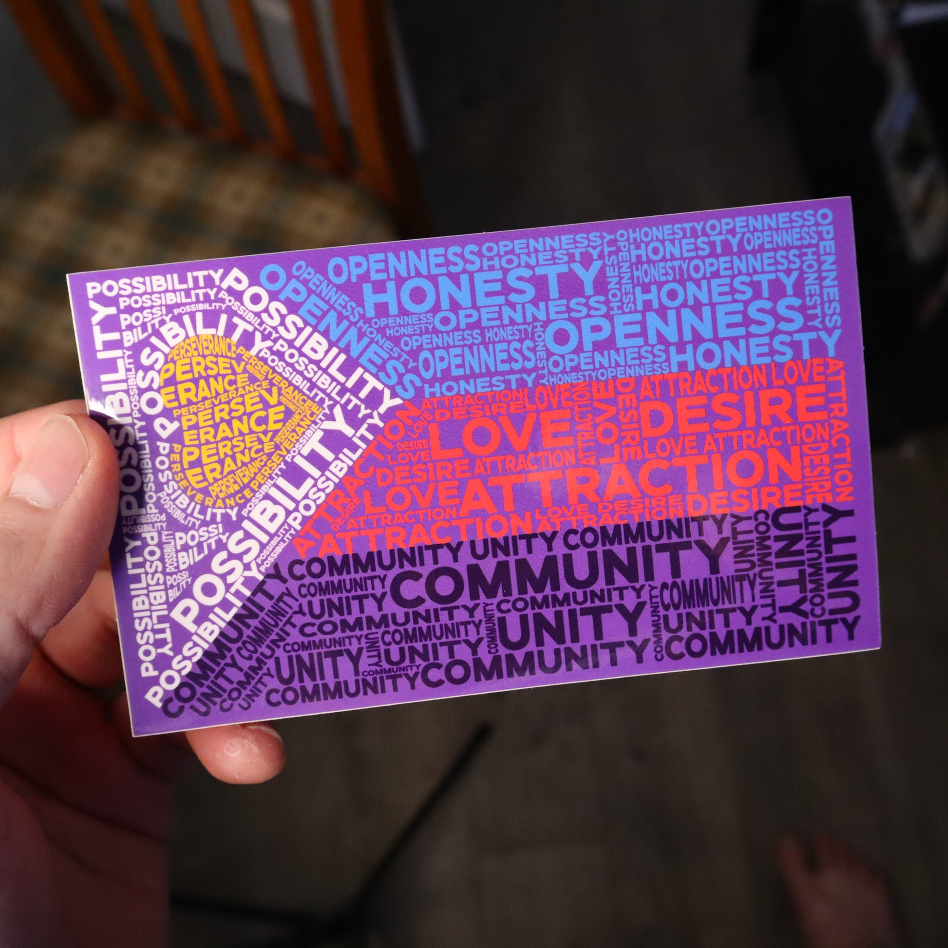 Every 4th vinyl sticker is free. Mix and match however you like. Get one for everyone in the polycule! All available stickers listed here.